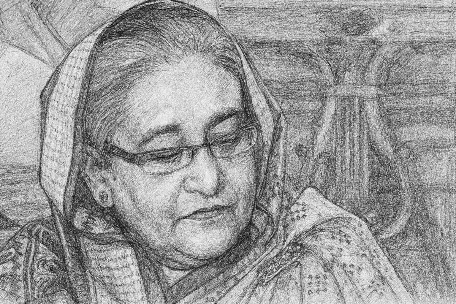 Former Prime Minister Sheikh Hasina. Sketch: AI/Channel i Online