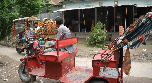 Manik Modok, who works in a gold shop on the side of the road in Patrail village in Manikganj, said, “Battery-run auto-rickshaws honk their horn, which causes problems. But nothing to say. The less the horn is played, the better for the environment.”
