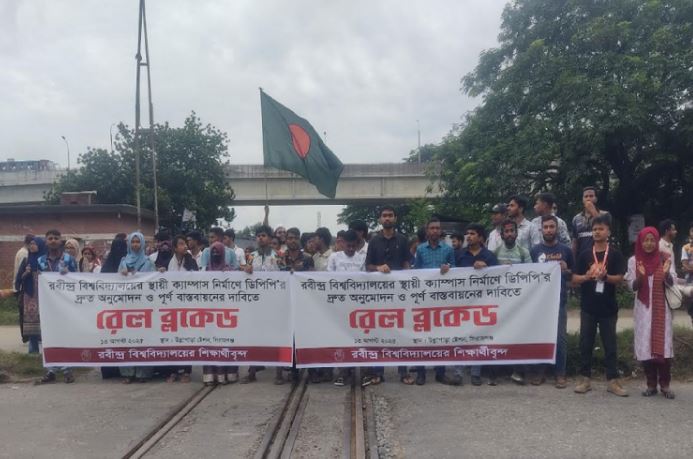 Train communication between Dhaka and the country’s northwest region came to a halt on Wednesday morning after students of Rabindra University blocked a railway track in Ullapara of Sirajganj, demanding the establishment of a permanent campus.